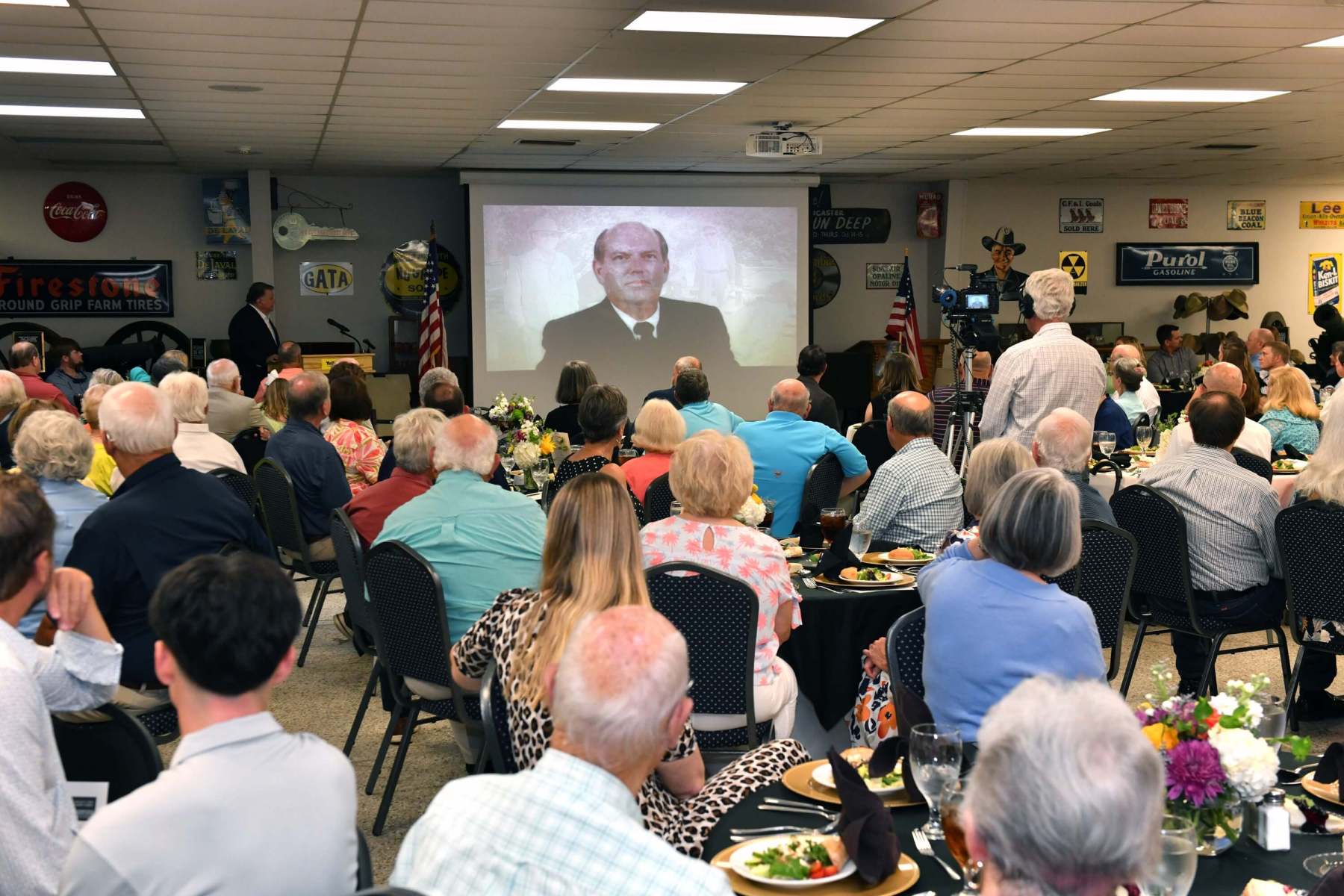 Convening in the Great Southern Conference Center, the group was united in their respect and admiration for Larry’s invaluable contributions to the preservation of Henry County’s rich history. A heartfelt video tribute celebrating Larry’s life and achievements captivated the audience, and Jimmy Rane, the President, presented an engraved gavel as a lasting tribute to Larry’s legacy.